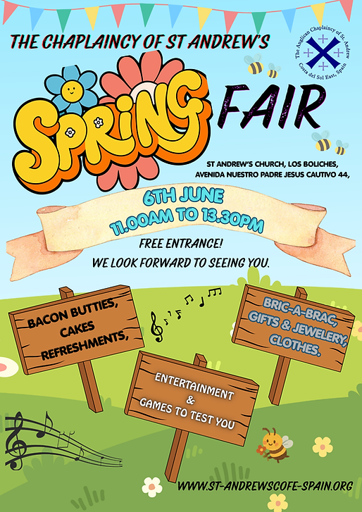 Please join us at our weekly Wednesday Coffee Morning 11.45 am- in our Church Centre at Los Boliches.